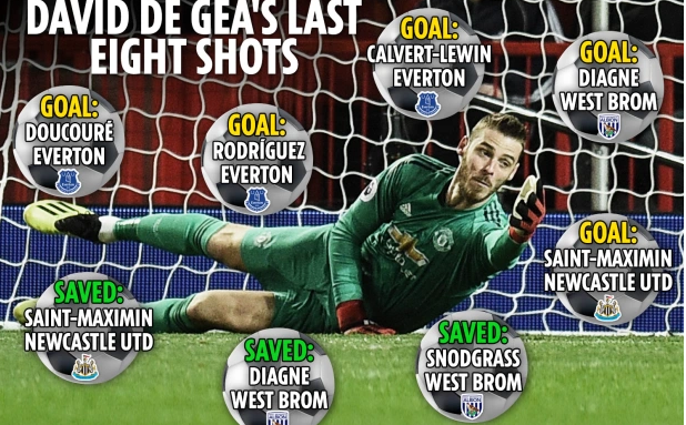 Paul Scholes còn khẳng định De Gea đang là vấn đề lớn nhất của MU. Và những thống kê cho thấy cầu thủ sinh năm 1990 quả thực không trong trạng thái tốt. Cụ thể, trong 8 cú dứt điểm trúng đích gần nhất mà phải đối diện tại Ngoại hạng Anh, De Gea phải nhận thất bại tới 5 lần.