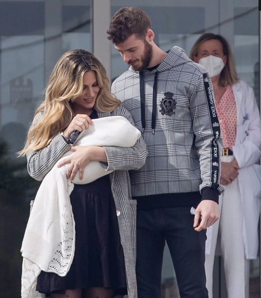 Công chúa nhỏ nhà thủ môn David de Gea chào đời hôm 4/3 tại quê nhà Tây Ban Nha. Một ngày sau đó, cả thủ thành MU và bạn gái đều đăng ảnh bàn tay nhó xíu của bé. Trên trang cá nhân, người yêu De Gea chia sẻ ảnh chụp bên ngoài bệnh viện ngày đưa con về nhà. Trong ảnh, thủ thành người Tây Ban Nha và bạn gái ca sĩ cùng mặc áo khoác đôi, nhìn con âu yếm.