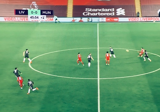 | Trọng tài thổi còi hết hiệp 1 khi Liverpool đang thực hiện đợt tấn công. |
