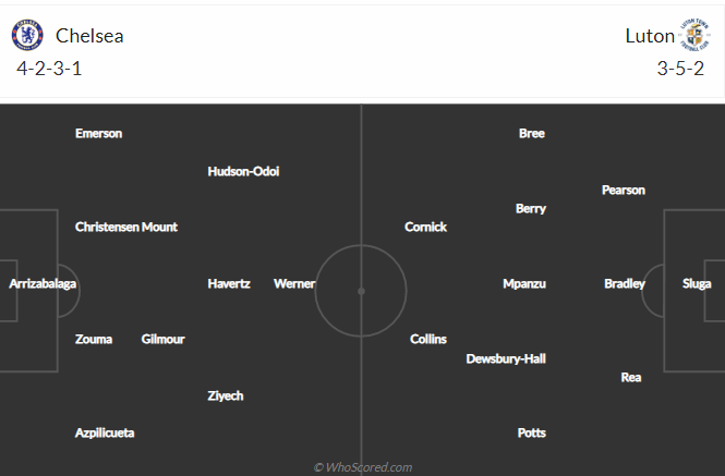 Về mặt lực lượng, Luton sẽ không có sự phục vụ của Eunan O'Kane vì chấn thương. Bị đánh giá thấp hơn, họ sẽ chơi phòng ngự phản công qua đó hy vọng có thể tạo ra bất ngờ. Chelsea và Luton Town đã không đối đầu với nhau trong một thời gian khá dài, với trận đấu cuối cùng giữa hai bên diễn ra vào năm 1994, tại FA Cup.