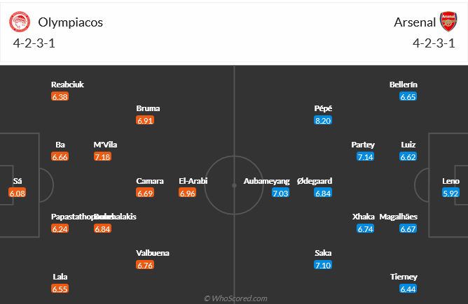 Việc từng đánh bại Arsenal ở mùa trước càng giúp Olympiacos tự tin vào một kết quả tốt trên sân nhà. Về mặt lực lượng, đội chủ nhà sẽ không có sự phục vụ của Avraam Papadopoulos, Ruben Semedo vì chấn thương, trong khi đó Sokratis Papastathopoulos và Marios Vrousai dính chấn thương nhẹ, khả năng ra sân còn bỏ ngỏ.
