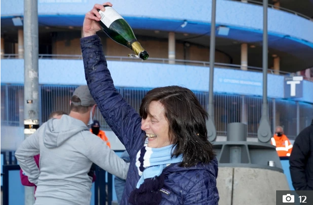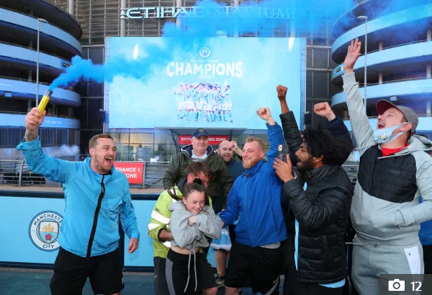 CĐV Man City ăn mừng chức vô địch Ngoại hạng Anh 2020/21 |