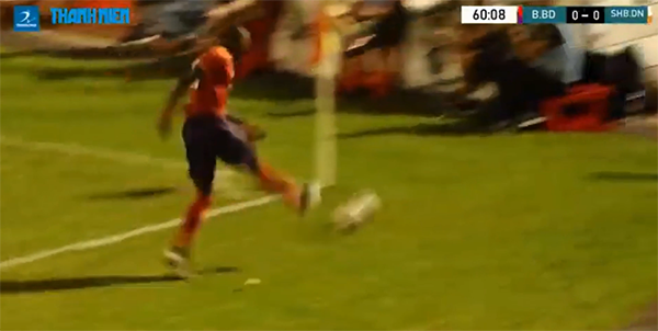 Ngoại binh Becamex Bình Dương sút bóng thẳng vào phóng viên