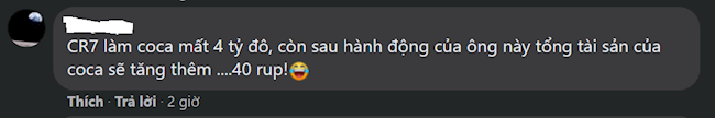 Hành động của Ronaldo chắc chắn khiến Coca-Cola không thể hài lòng, thậm chí hãng đồ uống này còn thiệt hại tới 4 tỷ đô la sau hành động của CR7. Chưa đầy 48 giờ sau khi Ronaldo phát đi thông điệp “Hãy sử dụng nước lọc”, HLV Stanislav Chercheso của ĐT Nga ngay khi bước vào phòng họp báo sau chiến thắng 1-0 trước Phần Lan đã uống một hơi Coca-Cola ngon lành.
