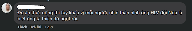 Trên mạng xã hội, CĐV Việt Nam đã bình luận sôi nổi về hành động thưởng thức chai Coca-Cola của HLV ĐT Nga - Stanislav Chercheso. Đáng chú ý, trước đó tiền đạo Ronaldo của Bồ Đào Nha đã khuyên mọi người nói không với Coca-Cola để sử dụng nước lọc.