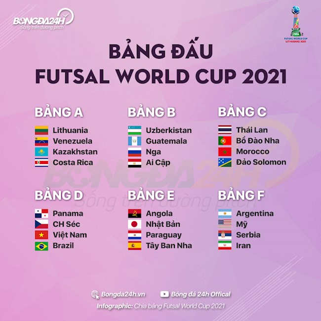 Vào tối qua 1/6, LĐBĐ thế giới FIFA đã tổ chức lễ bốc thăm Futsal World Cup 2021 tại trụ sở của mình ở Thụy Sỹ. Kết quả là tuyển futsal Việt Nam nằm ở bảng D cùng với Panama, Séc và Brazil.