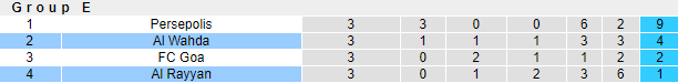 Trong khi đó, Al-Wahda xếp thứ 2 tức là có cơ hội đi tiếp nhưng vẫn phải nằm trong nhóm 3/5 đội nhì bảng có thành tích tốt nhất khu vực Tây Á.