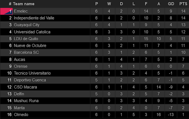 Giống như nhiều quốc gia Nam Mỹ khác, giải VĐQG Ecuador cũng chia làm hai giai đoạn song khác biệt ở chỗ, sau cùng vẫn có một BXH tổng để xác định vị trí chung cuộc chứ không phải tách hòa toàn (giai đoạn nào tính thành tích giai đoạn đó không liên quan đến nhau nên thường sẽ có 2 nhà vô địch trong một mùa).