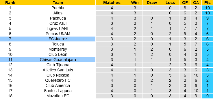 Giải VĐQG Mexico 2021/22 đã bắt đầu bước sang giai đoạn 2 Clausura. Trước đó ở giai đoạn 1 Apertura (diễn ra từ tháng 7/2021 đến tháng 12/2021), Juarez chỉ đứng thứ 16/18 đội chung cuộc còn Chivas Guadalajara xếp thứ 10 và được lọt vào vòng tranh chức vô địch tuy nhiên ngay trận tứ kết, Guadalajara đã bị loại sau loạt luân lưu 11m.