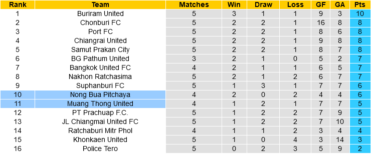 Bên kia chiến tuyến, tân binh Nong Bua Pitchaya đang đạt thành tích ổn hơn Muang Thong: 6 điểm/4 trận. Kể cả trên sân khách, Nong Bua Pitchaya cũng tạo được sự tin tưởng không nhỏ khi bất bại 8/9 trận xa nhà vừa qua trên mọi đấu trường (thắng 3). Xem ra đội khách vẫn có cửa giành điểm trận này.