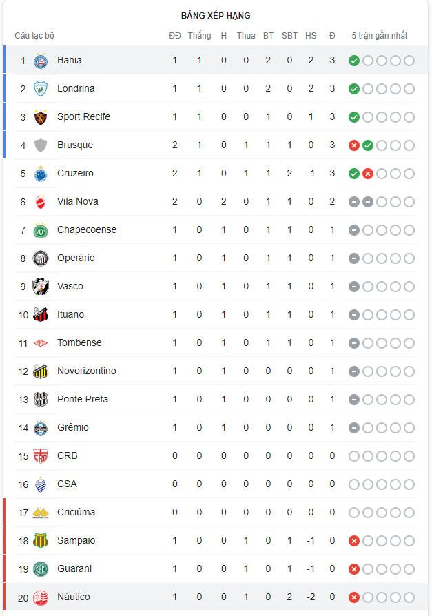 Khả năng để Nautico có được chiến thắng đầu tiên tại giải Hạng 2 Brazil 2022 đang rất thấp khi phải đụng độ Bahia ở lượt đấu tiếp theo. Đành rằng, đội bóng này sẽ được thi đấu trên sân nhà. Thế nhưng, sự chênh lệch với đối thủ là không hề thấp. Cần biết rằng, Bahia đang là ứng viên cho chức vô địch Brazil Serie B.