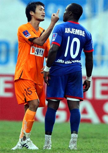 Đầu hiệp hai trận đấu trên sân Hàng Đẫy hôm chủ nhật, khi Đà Nẵng bị dẫn 1-2, tiền đạo Timothy cố tình giữ bóng trong một pha bị thổi phạt việt vị hòng ngăn chặn đối phương đá phạt nhanh. Trung vệ Hải Lâm lao vào giành bóng nhưng bị Timothy cản trở, giữa hai cầu thủ này xảy ra va chạm. Không chỉ mạt sát đối phương, Hải Lâm còn chĩa "ngón tay thối" vào mặt Timothy. Tiền đạo của Hòa Phát nổi khùng nhưng nhờ sự can thiệp của các cầu thủ trên sân, đã không có sự cố nào xảy ra.