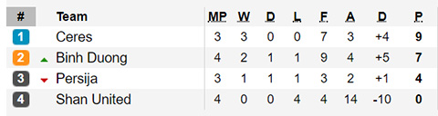 - Trận đấu khép lại với chiến thắng tưng bừng dành cho Bình Dương. Như vậy, đội chủ sân Gò Đậu tạm vươn lên vị trí thứ 2 bảng G với 7 điểm sau 4 trận. Phải đến ngày 23/4 thì đội đầu bảng Ceres Negros (9 điểm) mới đá lượt trận thứ 4 trên sân của Persija Jakarta (5 điểm). Nếu đội bóng Indonesia thắng trận này thì lúc đó cơ hội chiếm ngôi đầu bảng G sẽ đến với Bình Dương. Bởi họ sẽ gặp chính hai đối thủ này ở hai lượt trận cuối. Khi đó, Anh Đức và đồng đội chỉ cần thắng cả hai thì sẽ chính thức đứng đầu bảng G mà không cần quan tâm kết quả các trận đấu khác.