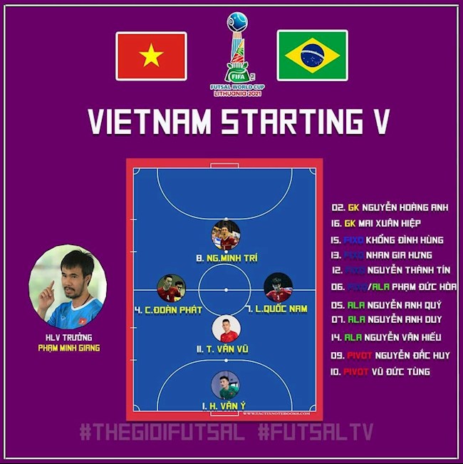 Trong trận này, HLV Phạm Minh Giang giữ nguyên đội hình xuất phát gồm thủ môn Văn Ý, fixo Văn Vũ, 2 ala Quốc Nam và Đoàn Phát cùng pivo Nguyễn Minh Trí.
