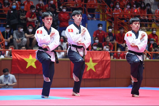 - Sau tấm HCV của đội Taekwondo nữ, đến lượt đội Taekwondo nam gồm 3 võ sĩ Trần Hồ Duy, Nguyễn Đình Khôi, Nguyễn Thiên Phụng lập công khi giành số điểm cao nhất ở nội dung biểu diễn quyền đồng đội nam.